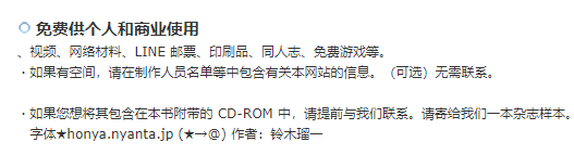 字體來(lái)源及授權(quán):https://honya.nyanta.jp/